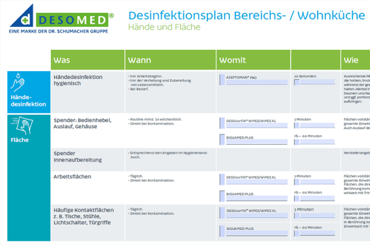 Reinigung- und Desinfektionsplan Küche