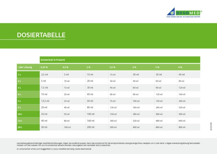 Für die Herstellung gebrauchsfertiger Desinfektionslösungen